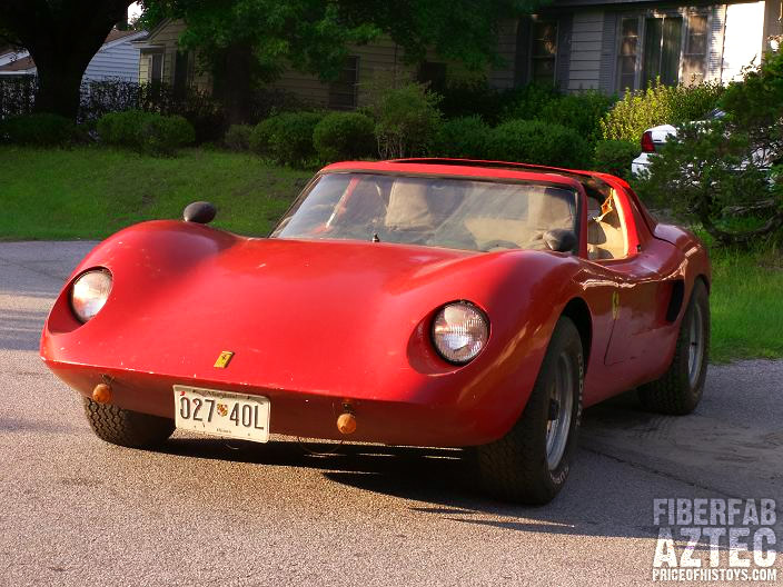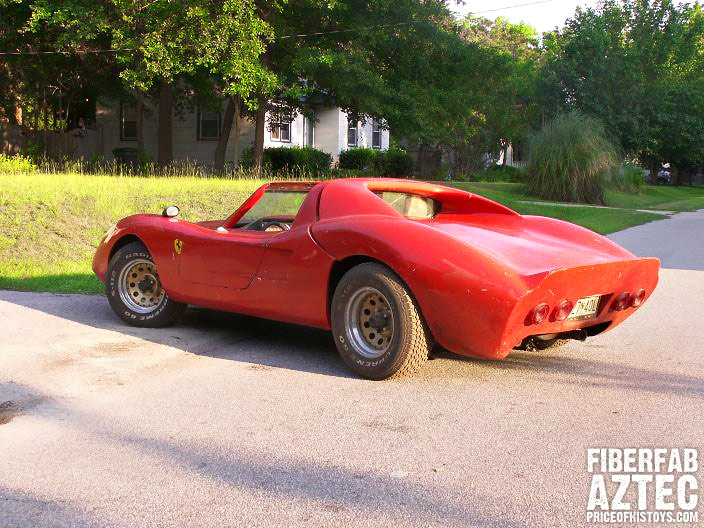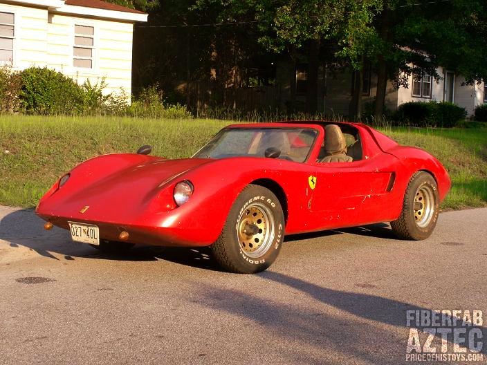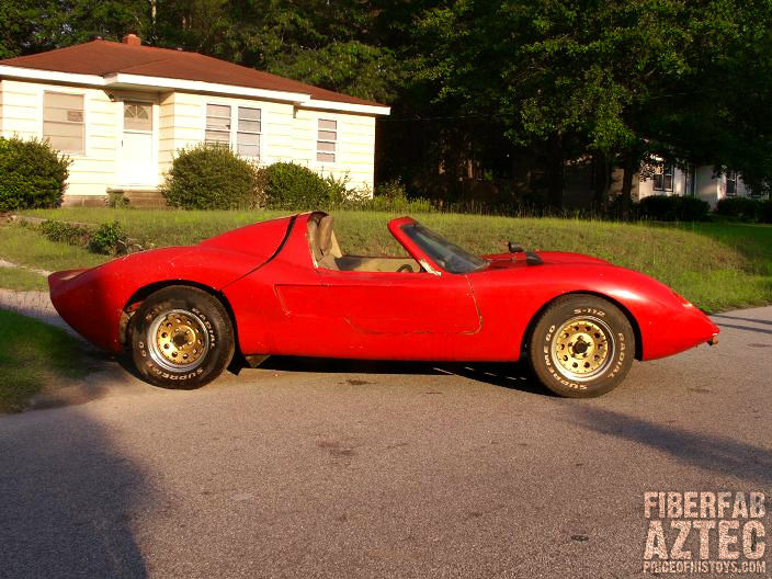 This is a slightly more recent Aztec than the one in the previous entry (if you go to the categories page you can see I have two models listed) — you can see it’s got a different rear design, and this one has gullwing doors rather than the fliptop (although this one is a spyder, so if it was me, I’d just glass them in and skip having doors). Personally I prefer the older one, but they’re both quite beautiful cars, this one being a little closer to the Ferrari 330 P2 that the seller has mimicked.