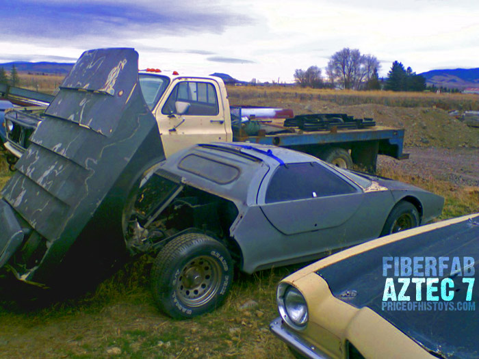 This Fiberfab Aztec 7B is being listed in Helena, Montana for $2,500 (with all fair offers considered) and rides on a VW pan with an aluminum Buick 215 V8 mated to the VW transmission. The bad news is that the windshield (a valuable commodity since it comes from a Lamborghini Muira) has a hole knocked in it. If you’d like to make Shane an offer you can write him at Wbadcat69@bresnan.net.