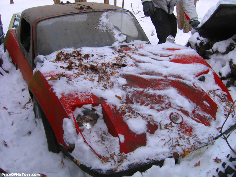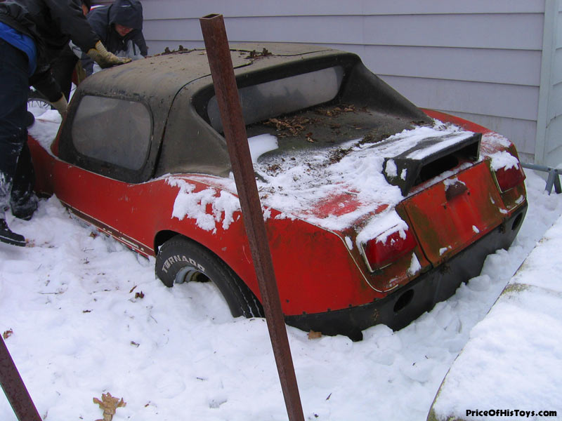 When Isabelle and her husband first saw this buried in the snow in a backyard, they thought it might be a Vokaro because parts of the rear are similar, but the front is far too angular… Anyone recognize it? It looks like so many cars, but I can’t pin it down to just one.