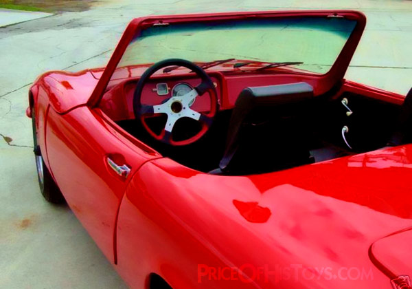 Viv (vivpena@msn.com) has the 1972 one below for sale for $3,000 or best offer, writing that only about forty were ever made and that the fit and finish makes it seem more like a production vehicle than a kit car, although there are a few stress cracks that show through the recent paint job (and new windshield, gas tank, and floors). A little work is still needed, the rear brakes have to be hooked up and the wiring needs attention — don’t worry, it comes with a manual — but it seems like a good deal for someone willing to do these last little touches. The car is located in Del Rio, Texas.