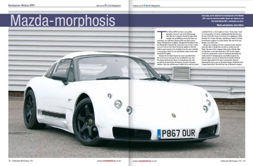 Well this is cool! Complete Kit Car has the Widow SPR1 Kit Car on the cover of their February 2016 Issue. It is great to see this great new start up in the kit car industry to be getting the media they deserve.
