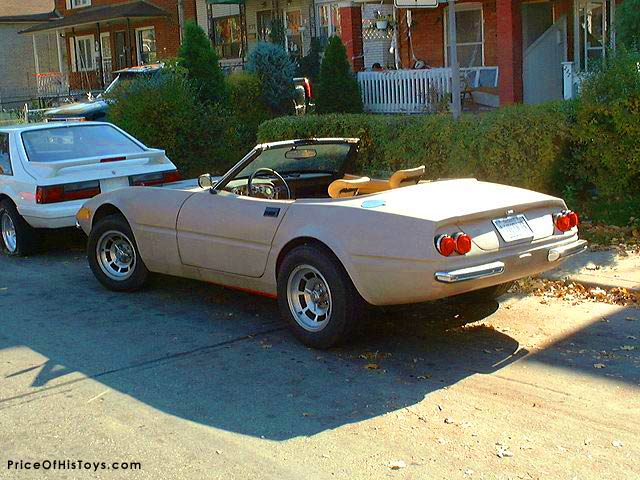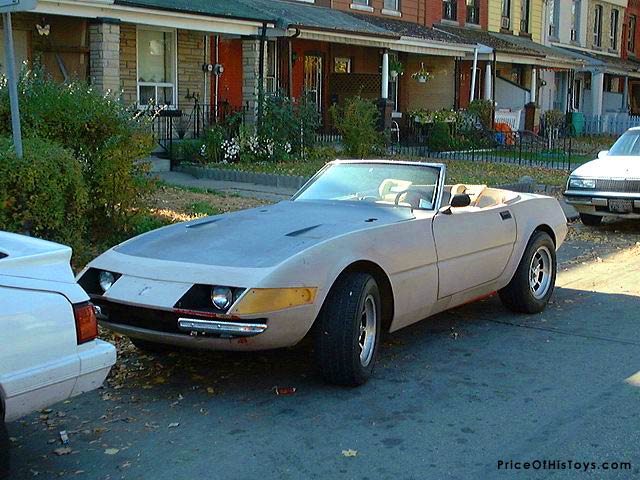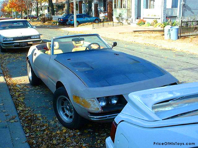 These are the very last pictures I ever took (for eBay actually) of my old McBurnie Ferrari Daytona clone. If I recall it was built around a big block ’74 Corvette (and you can see my red ’77 in the background of a couple of the shots). I think I paid about $3000 for it and turned it around on eBay a week later for nearly double… I’d bought it primarily because it was a deal and I wanted to just sell it because (sorry guys) Ferraris aren’t my thing on the whole. The guys who bought it ran some kind of movie car attraction and last I heard were turning it into a Miami Vice display!