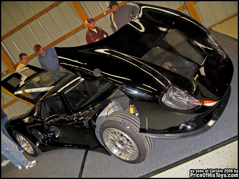 One of the hottest cars at Carlisle 2006 was the Factory Five GTM Supercar, which to me sort of looks like a Ferrari 360 from the back and a modernized GT40 (although that’s not being entirely fair). What blew me away was they designed this car to be built for under $30,000, and the full kit sells for $19k! It’s a complete kit that you can finish with Corvette parts and a Porsche transaxle (G50). Having sat in the car it’s incredibly comfortable (I’m 6’2″, 220 pounds, and I saw a guy a lot bigger than me sit in it as well).