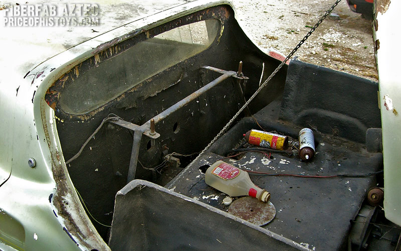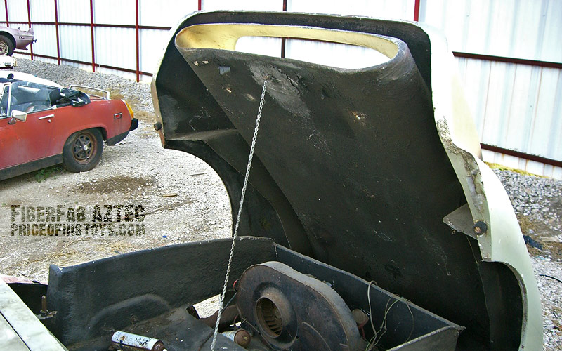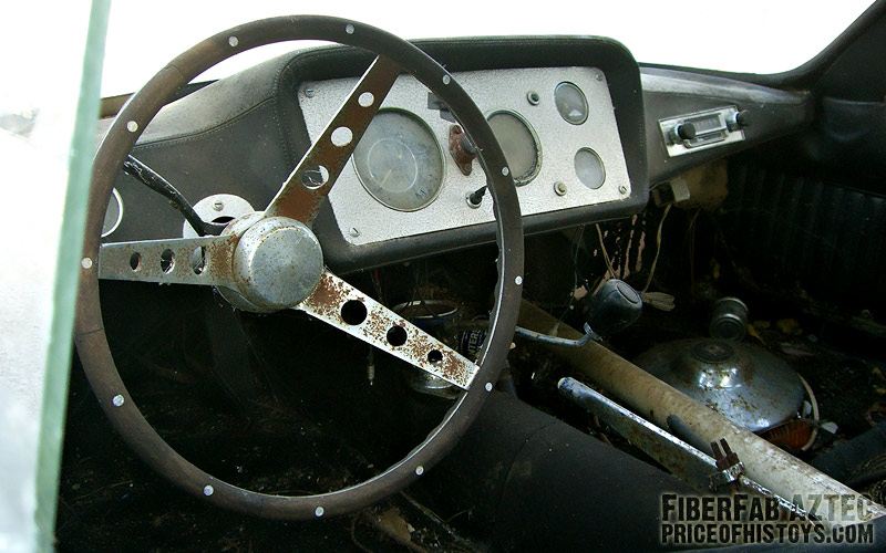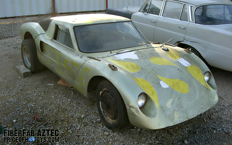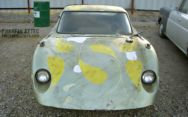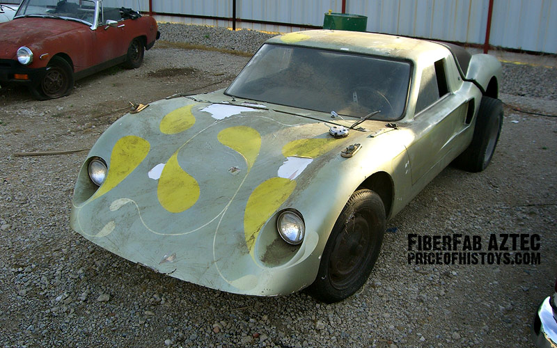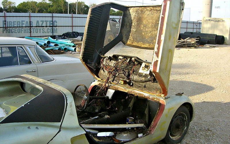 The folks at Freddie’s Transmission in Dallas, who have quite a few neat old cars for sale (including a VW Trike) have a first-generation FiberFab Aztec (being sold for a customer) — which I prefer to the later slew of GT40-knockoffs that later dominated the exotic kitcar market — with the flip-top for sale for one of their customers. It’s definitely a project with a lot of work, and hasn’t run in years. “Make an offer”, they say. In my opinion it’s worth in the realm of $500… hope you have plenty of time on your hands. Love the paint job it used to have. Very Austin Powers.