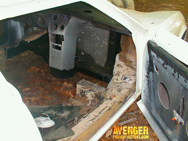 Well this is an odd project! This Fiberfab Avenger started life as the version that they offered for the Corvair driveline, but one of the recent owners cut all that out and grafted in the front and rear from a Jaguar XJ6 (and cut out the floor), with the intention of running a 500 CI Caddilac V8 up front… Doesn’t seem like a good idea to me, nor did it seem like a good idea to Eugene, who bought the project as you see it now.