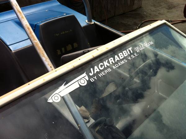 JackRabbit kit car built by Herb Adam’s Carmel California shop. Herb Adams a well known General Motors engineer of Pontiac Trans Am and GTO creation fame; Pontiac Trans Am Racing, V.S.E Cobra, and Contessa fame built this car, one of less than 25 actual kits ever made before the Cobra kit car craze took off and VSE produced it’s own famous Cobra kit. One of less than half dozen ever built by Herb Adams shop itself. Based on a rabbit/golf drive train, shortened wheel base with a tube chassis, this street legal 1500 lbs “go cart” is a turn key Gymkhana screamer. 1 plus G skid pad with street tires. Herb Adams himself said the car is able to beat a Cobra in a down hill race. Own a classic collectable built by a master automotist with vision and ability to produce it. Watch the YouTube video of the V.S.E. JackRabbit sales promotion done in the early 90’s. The car can be seen in the garage of Herb Adam’s residence in Pebble Beach, CA. It is the blue and white car in the middle. Interview with Herb can be read here. Three quarters thru the interview Herb refers to the JackRabbit. http://www.pontiacsonline.com/Herb%20Ad The car is complete. It does run rough, 20 plus years of storage. Ca registered non op. Trades considered