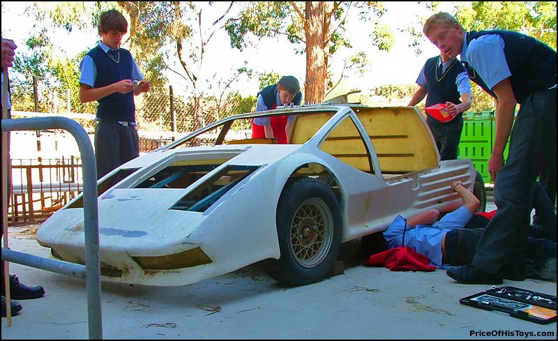 “The Siva Saluki (or look alike) featured in the August 6th posting has been purchased by Year 11 Engineering students of Inaburra, a private School located on the southern edge of Sydney, Australia. The class of twenty students have wasted no time in starting work on the car despite its rustic charms. As their Engineering Studies teacher I was amazed when in the space of one lesson the students organised themselves to clean the vehicle of its miscellaneous tyres, beer cans, grass clippings etc, removed a large quantity of oil off the pan and then separated the various fibreglass mouldings and frames. It was as if the car was being swarmed by ants.