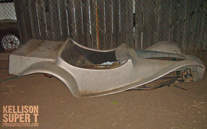 I don’t usually post buggies, but I thought this one was an interesting project… As well as their sportscars, Kellison built a series of VW-based dunebuggies including the 70s Mini-T/etc style Super T, a relatively rare buggy. What makes the one that Sonny has for sale unique is that it’s undergone a front-engine conversion, set up for a small block V8, with a Jaguar rear end, drum brakes, and rack and pinion steering on a tubular chassis. The car is currently partially dismantled and ready to be picked up, and he describes it as rust-free, crack-free, and without chips.