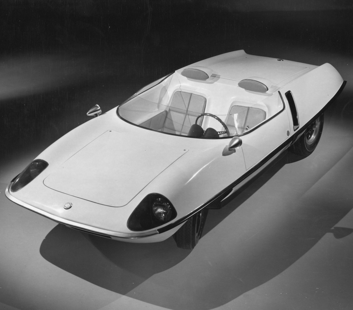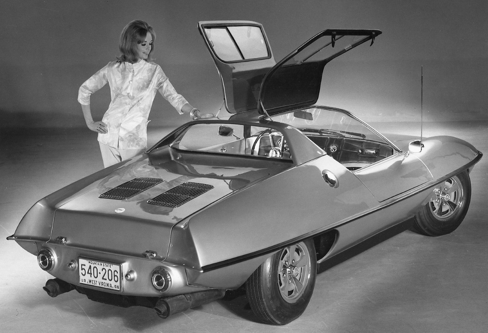 In 1964, Marbon hired a design firm to create a design that could be thermoformed from their new ABS plastic called Cycolac. The body was made as a top half which included the dash, interior and seat platforms and bottom half, which included the inner wheel wells. Marbon hired a race car company called Centaur Engineering to construct a chassis and assemble the car which was to debut at the SAE (now called SEMA) show in Detroit in January 1965. The car was a two seat roadster with a Hillman Imp 4-cylinder engine in the back, mounted on a metal space frame.