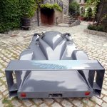 The body kit are 12 pieces without rear spoiler, make from fiberglass; windshield and side windows are made from polycarbonate; tube chassis is hand made powered by Renault PRV V6 engine, transaxle is also from the original Renault; front wheels are 18” rears are 19”, suspensions are from QA1.