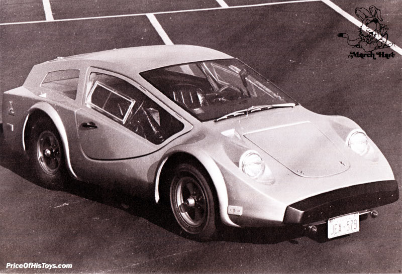 The March Hare was designed by Jim Edwards and John Marshall, head of Brigham Young University design school. Tooling and prototype were built by Jim & Vicki Edwards and Leavonworth Holden, loft chief of Trumpy Yachts of Annapolis, MD. Most of the buyers were engineers. Bruce Kirk, project manager of the Harpoon program built one that won top prize in several car shows. A more advanced model called ECCO (Edwards Car Co.) was being built when the company closed shop.