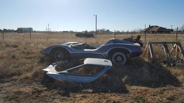 It has no title but it needs a new chassis underneath anyway. It is supposed to sit on a VW chassis. It’s worth the price as the body of the kit runs $10,000 for a new body alone. This is one of only a handful in the state. It’s a very rare neat looking car to drive and own. We’re selling it because our son doesn’t have the time to work on it. The top is off along with the hood and seats, etc. He took it apart to begin work, and it hasn’t been put back together, but we have everything he took apart/off of it. It doesn’t have an engine and it has part of the transmission.