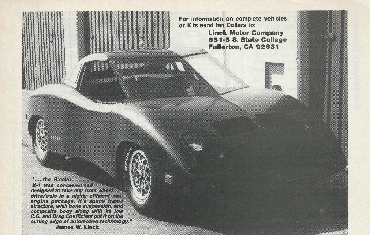 3. Linck Stealth X-1 – This is another one of those kit cars I know nothing about. Other than these small advertisements in magazines I have never seen other info on them. It just looks wrong . If you have info on it feel free to let us know.
