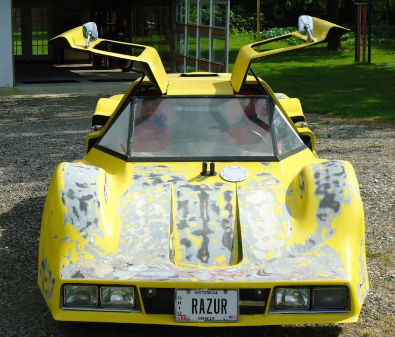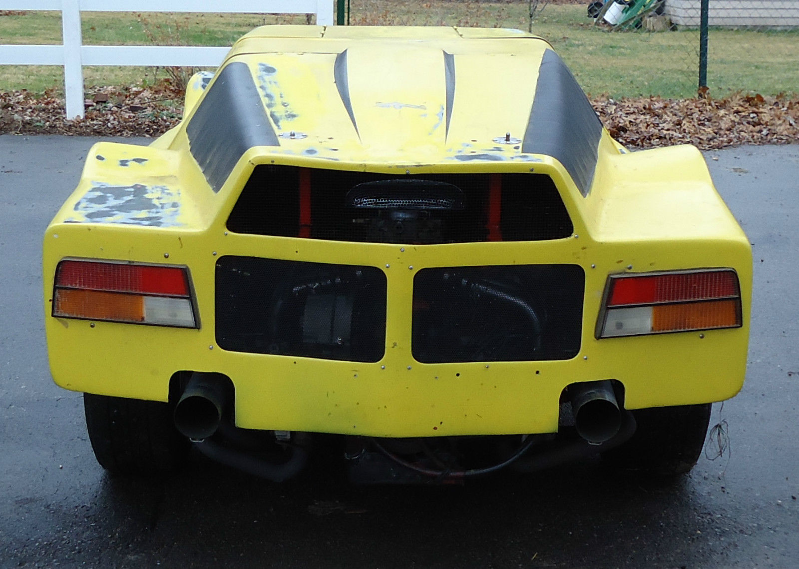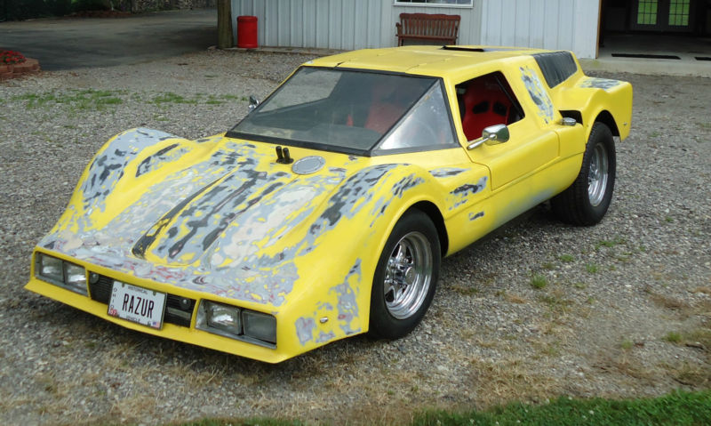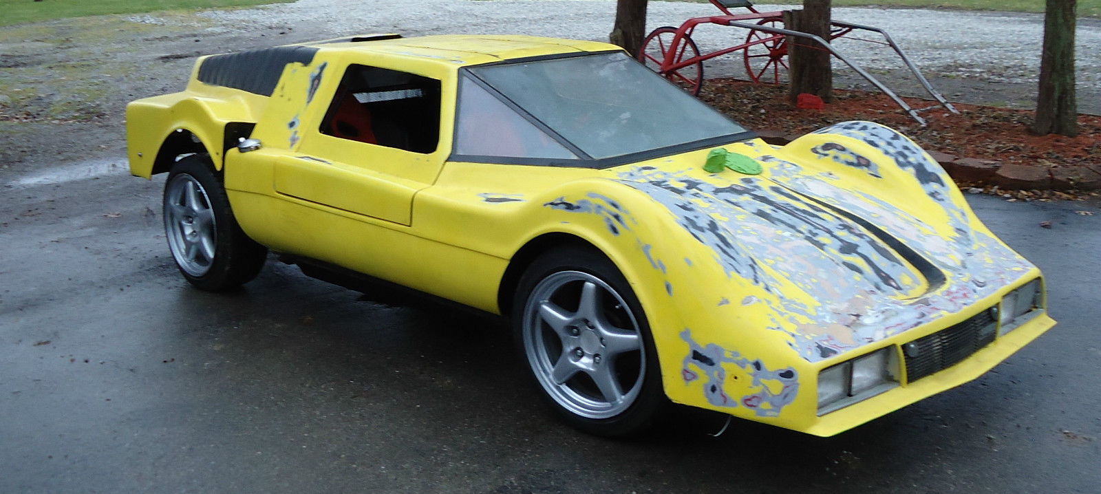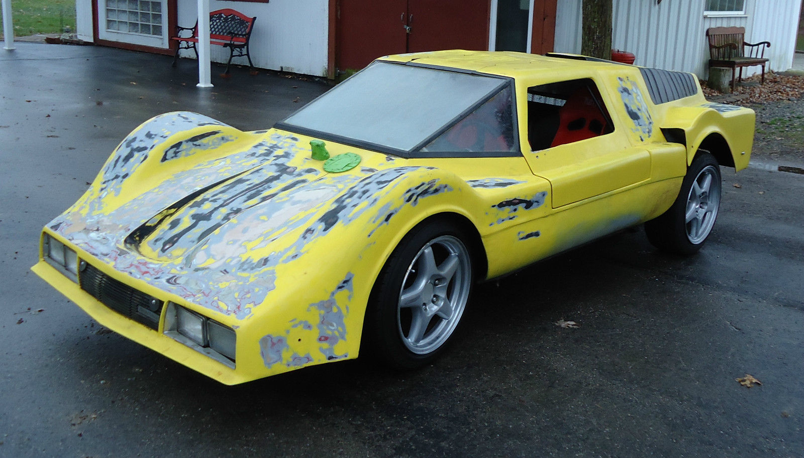 this project has sat in the barn for too long and we have lost interest. car started and drove about 2 years ago, then we changed the carb and timing and it did not start. covered it back up and moved on to something else. it has better heads on the corvair six cylinder engine. good tires on corvette wheels, new seats and steering wheel. we lowered the floor pans with new steel to add much needed head room. body is solid an just needs sanding and paint. new brake parts installed. gauges work, head lights work, rear lights not connected, i have been told that only two of these shalakos with the long nose were built , one with aluminum and this one with fiberglass. when finished this should be quite valuable. my son went to college and im moving on to another challenge. – John
